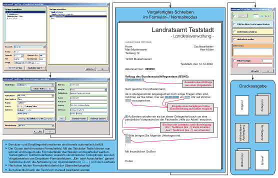 Nach seiner Zusammenstellung steht das Schriftstück dem Sachbearbeiter im Formulareingabemodus zur Verfügung, in dem er mit der Tabulator-Taste alle Eingabefelder und Optionskästchen durchlaufen und dabei ausfüllen bzw. bearbeiten kann.